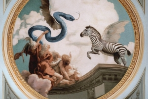 在海报中,国米以蓝色巨蛇的形象出镜,乌迪内斯这则以斑马出镜,两方都插上翅膀在天空中遭遇。